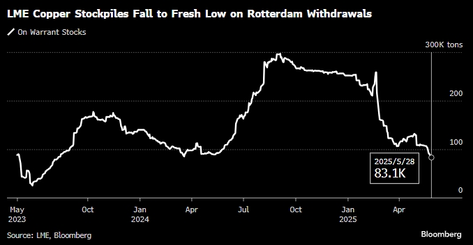 Запасы меди на Лондонской бирже металлов упали до самого низкого уровня почти за два года, поскольку трейдеры продолжают демонстрировать высокий спрос.