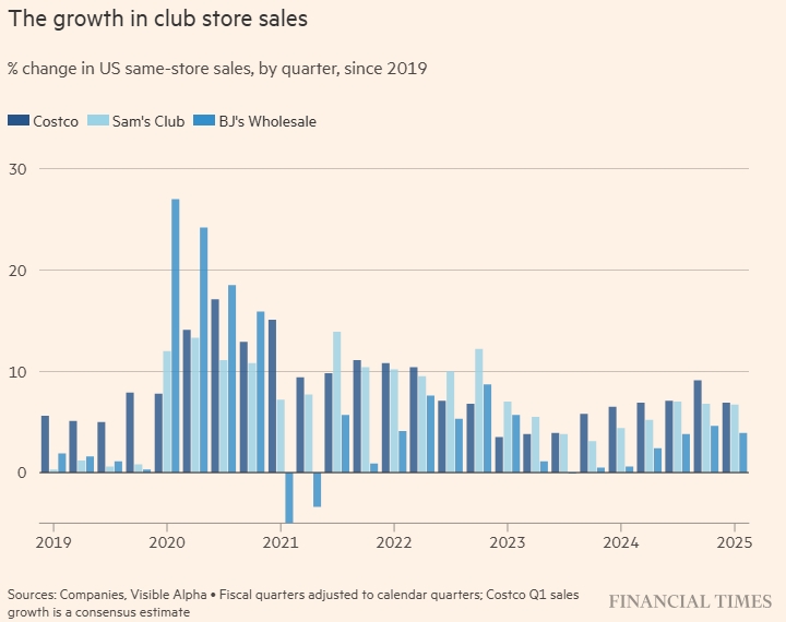 Бум в сфере складских клубов — одно из последствий инфляции, которая привела к росту потребительских цен в США на 26% по сравнению с 2019 годом, до пандемии Covid-19. Опросы потребителей показывают, что они всё ещё обеспокоены инфляцией, поскольку США вводят пошлины на товары своих торговых партнёров.
