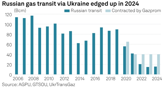 Транзит российского газа через Украину в 2008 году достигал 117 млрд куб. м, но в 2023 году снизился до 14,65 млрд куб. м, а в 2024 году вновь вырос до 15,5 млрд куб. м.