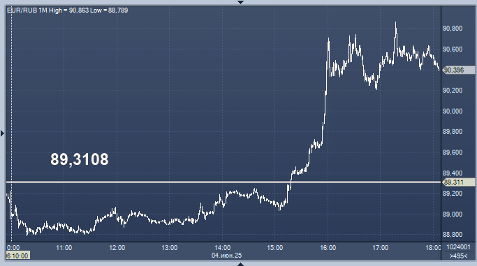 К вечеру рубль развернул вниз. Его больше не поддерживает налоговый период. Участники рынка следят за сообщениями на тему украинского урегулирования. Зеленский заявил, что Украина «не воспринимает всерьез меморандум РФ» с условиями перемирия и мира, «поскольку это ультиматум».
