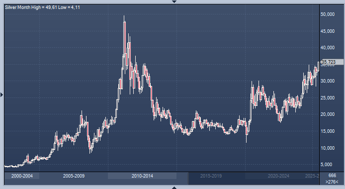 Соотношение золота и серебра, которое показывает, сколько унций серебра можно купить за одну унцию золота, используется рынком для оценки будущих тенденций, поскольку оно отражает текущую динамику серебра по сравнению с его исторической корреляцией с золотом.