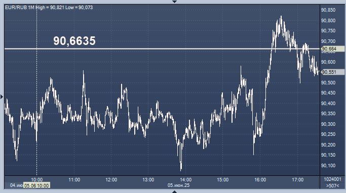 - 90,6635 рубля за 1 евро