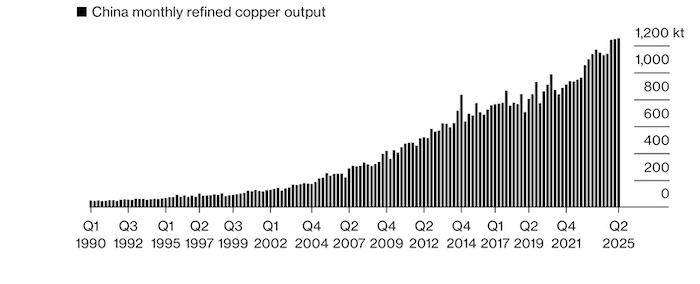 Сокращение избыточных мощностей в китайской экономике недавно стало важным приоритетом Пекина, однако так называемые «дружественные к будущему» отрасли вроде меди — металла, необходимого для электрификации и энергоперехода — получают больше свободы, чем секторы в структурном упадке, такие как нефтепереработка.