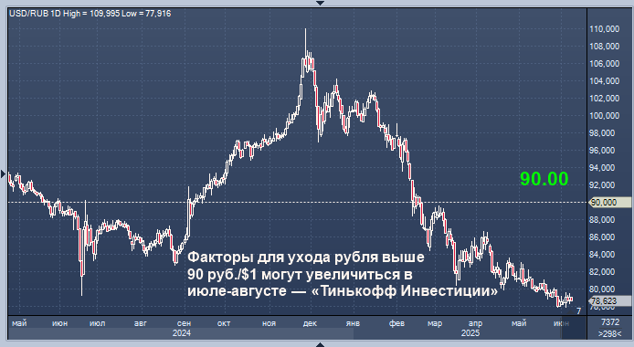 Факторы перехода рубля к ослаблению по отношению к доллару США в интервал выше 90 руб./$1 могут критически увеличиться в июле-августе текущего года, считает главный экономист брокера "Т-Инвестиции" Софья Донец.