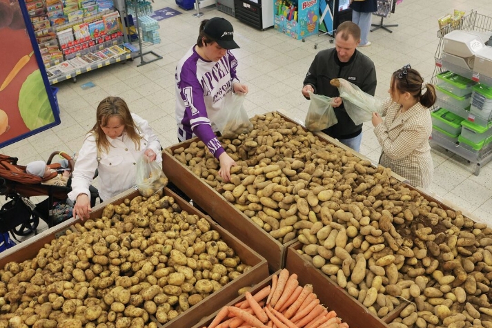 Покупатели выбирают картофель в супермаркете в Санкт-Петербурге, Россия, 30 мая 2025 г. REUTERS/Антон Ваганов