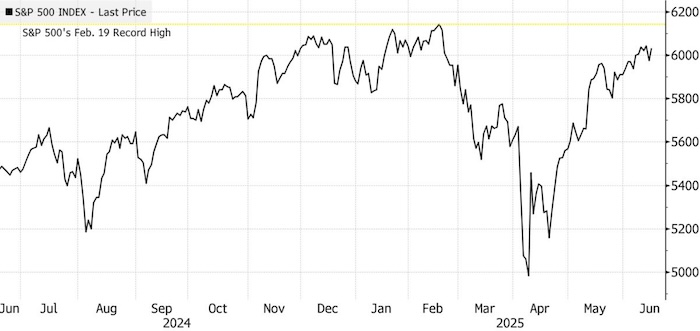 Интерес к риску, который привел S&P 500 к 21% росту от апрельского минимума, постепенно угасает. Индекс находится вблизи уровня 6000 уже месяц, а так называемый индекс страха фондового рынка VIX держится чуть ниже 20, отражая устойчивое беспокойство инвесторов по поводу геополитических событий и других рисков.