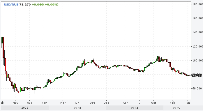 «Рубль сохраняет позиции, несмотря падение экспортной выручки, — отмечают эксперты в обзоре. — Курс застрял между 78 и 79 рублями на фоне слабого спроса на валюту — при текущих ставках спрос на рублевые активы остается повышенным. Снижение ключевой ставки ЦБ на 1 п.п. нивелирует дальнейшее замедление инфляции. Реальные ставки в экономике практически не изменились. Ожидать быстрого снижения ставки ЦБ пока не приходится, поэтому рубль останется достаточно крепким в течение ближайшего квартала. Существенное ослабление курса рубля, скорее всего, начнется в осенний период».