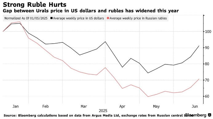 Такая ситуация ставит Россию в невыгодное положение по сравнению с некоторыми странами-партнёрами по ОПЕК+, например, с Саудовской Аравией, чья валюта привязана к доллару. Это также означает, что у Кремля, который зависит от нефти и газа примерно на треть своих доходов и несёт большую часть расходов в рублях, остаётся меньше свободных средств.