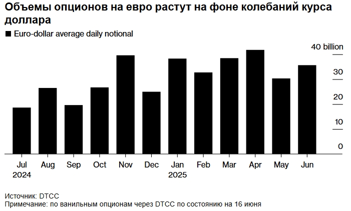 Евро становится всё более значимой валютой на мировом рынке валютных опционов, поскольку трейдеры избегают доллара из-за рисков, связанных с непредсказуемой политикой США и глобальной торговой войной.
