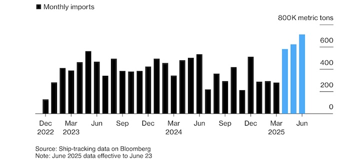 Импорт СПГ Германии резко вырос этим летом. Источник: Данные отслеживания судов Bloomberg