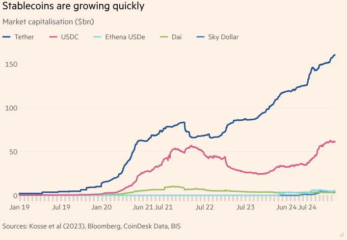 В ответ на растущее использование этих активов правительства США и Великобритании вводят нормативно-правовую базу для стейблкоинов. В обращении уже находится около 250 миллиардов долларов, в основном это долларовые токены, такие как Tether и USDC от Circle.