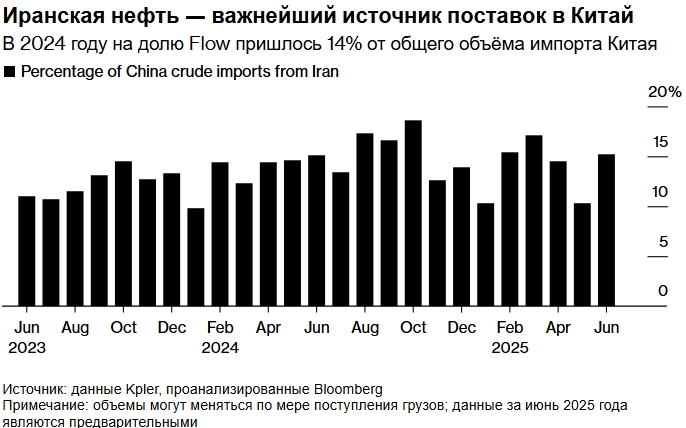 Китай, крупнейший в мире импортёр нефти, получает около 14% своей нефти из Ирана. Но эта цифра, вероятно, выше, поскольку часть импорта маскируется под поставки из Малайзии, а также Объединённых Арабских Эмиратов и Омана, чтобы обойти санкции США, которые Пекин не признаёт.