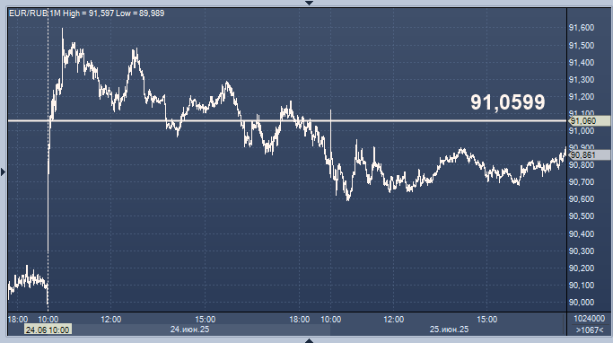 - 91,0599 рубля за 1 евро