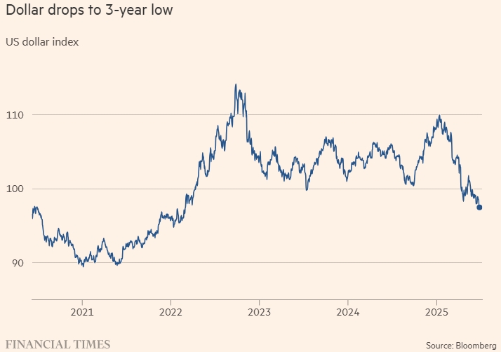В этом году доллар ослаб более чем на 10% из-за опасений по поводу экономики США, включая слабые производственные показатели и растущие опасения по поводу устойчивости долговой нагрузки в стране.