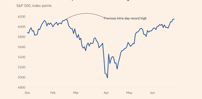 График S&P 500 показывает восстановление американских акций после апрельской распродажи. Источник: The Financial Times