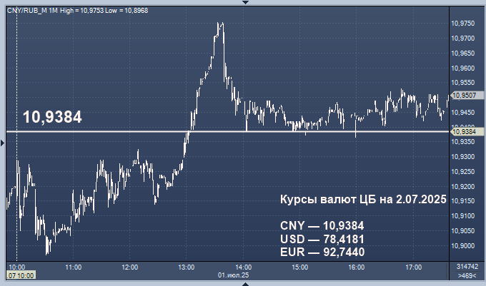 - 10,9384 рубля за 1 китайский юань