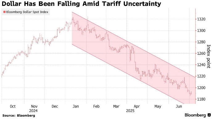Индекс доллара потерял более 9% в 2025 году, поскольку рынок делает ставку на его будущие результаты. В среду он достиг сессионного максимума, поднявшись после двух дней снижения, поскольку законопроект президента Дональда Трампа о сокращении налогов и расходов на сумму 3,3 триллиона долларов был принят Сенатом. Позже индекс вернул эти достижения.