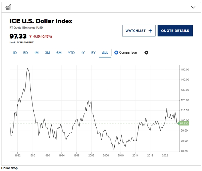 В июне курс доллара по отношению к мировым валютам упал на 10,7%, что стало худшим показателем с 1973 года, когда Никсон нарушил золотой стандарт Бреттон-Вудса. На своём минимуме курс доллара достиг уровня, который был зафиксирован в феврале 2022 года.
