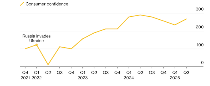 Потребительское доверие в России восстановилось. Источник: Bloomberg