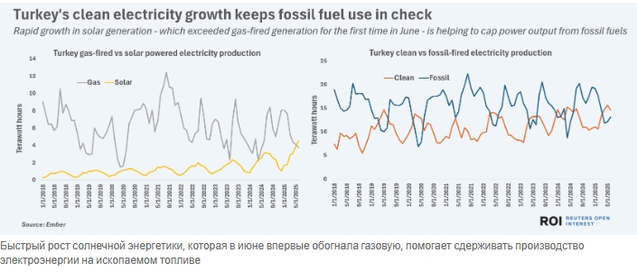 Согласно данным Ember, угольные электростанции являются основным источником электроэнергии в Турции, и в прошлом году на их долю приходилось 36% от общего объёма поставок электроэнергии в стране.
