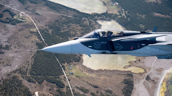 Шведский истребитель Gripen E пролетает над Балтийским морем, но Хельсинг говорит, что беспилотные полёты могут начаться «в этом десятилетии» © Информационное агентство TT News/AFP через Getty Images
