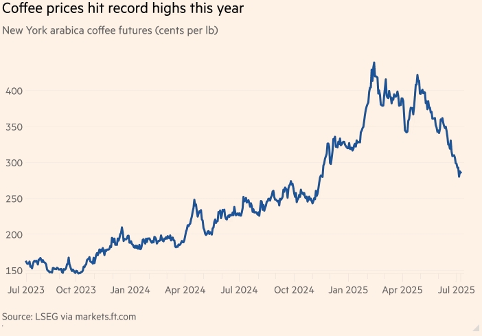 В четверг стоимость фьючерсов на кофе резко выросла после того, как президент США Дональд Трамп пригрозил ввести 50-процентную пошлину на бразильский кофе, который является крупнейшим в мире. Это вызвало беспокойство в отрасли и может привести к росту цен для американских потребителей.