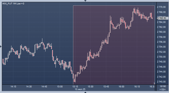 График фьючера на индекс Мосбиржи интервалами в 1 минуту