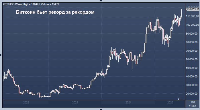 Впервые в истории криптовалюта преодолела отметку в 118 000 долларов, достигнув пика на уровней 118 423 доллара. Ещё в апреле её стоимость опускалась ниже 80 000 долларов.