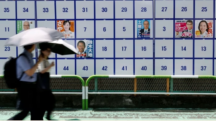 Согласно опросам, правящая Либерально-демократическая партия Японии понесёт большие потери на парламентских выборах в верхнюю палату, которые состоятся в воскресенье © Франк Робишон/EPA/Shutterstock