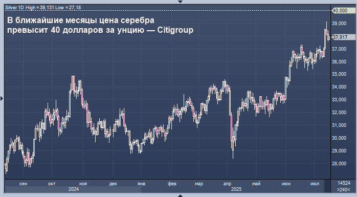 По информации от Citigroup Inc., которая подтвердила более консервативный прогноз по золоту, ожидается, что в ближайшие месяцы стоимость серебра продолжит расти, превысив отметку в 40 долларов за унцию. Это связано с уменьшением физических поставок и увеличением инвестиционного спроса.