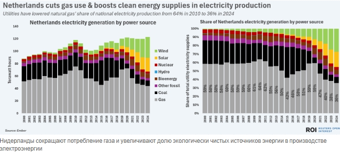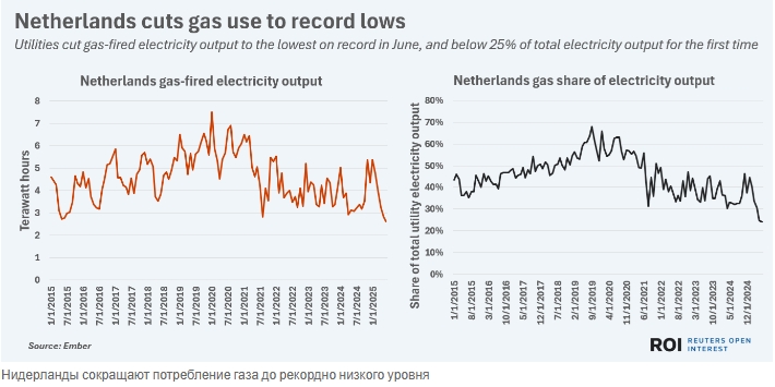 Однако после начала конфликта на Украине в 2022 году коммунальные службы Нидерландов резко сократили потребление природного газа. В первой половине 2025 года газовые электростанции обеспечили лишь треть потребностей страны в электроэнергии.