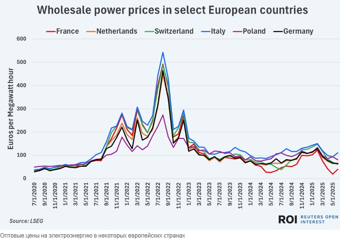По данным LSEG, в первой половине 2025 года оптовые спотовые цены на электроэнергию в Нидерландах в среднем составляли около 90 евро за мегаватт-час.
