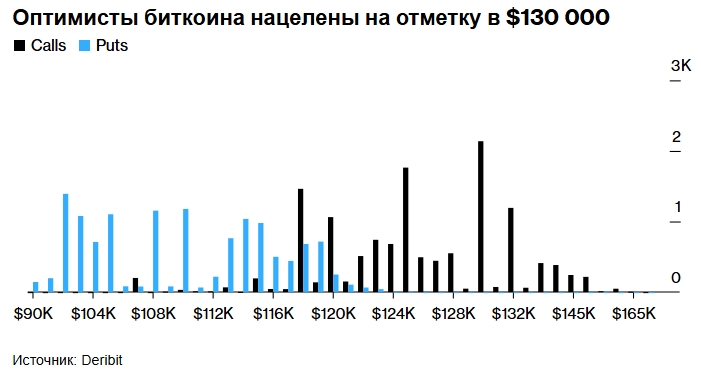 По данным Deribit, спрос на биткоин остаётся высоким. Открытый интерес к опционам на уровне $130 000 с истечением 1 августа повышен. В пятницу курс биткоина практически не изменился и остался на уровне около $119 570.