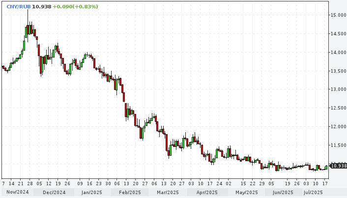 «Рубль в пятницу открылся вниз к юаню и после неудачной попытки восстановления стал быстро дешеветь, — отмечает эксперт в комментарии. — Пара CNY/RUB приближалась к отметке 10,96 руб., немного не дойдя до недельной вершины, установленной в понедельник. Ослаблению рубля, вероятно, способствует нарушение баланса между спросом на иностранную валюту и ее предложения».