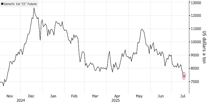 Цены восстановились после того, как рынок какао пережил один из самых волатильных периодов в истории. Цены достигли рекордных максимумов в начале года из-за неурожая в Западной Африке, но затем резко упали — высокие цены начали разрушать спрос среди производителей шоколада и кондитерских изделий.