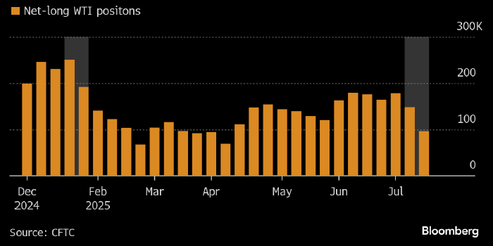 С начала месяца спекулянты сократили чистую длинную позицию в нефти WTI почти наполовину, вследствие чего ее объем опустился до 14-месячного минимума. Это стало следствием нового витка эскалации торговой войны со стороны Дональда Трампа, отмечает Bloomberg.