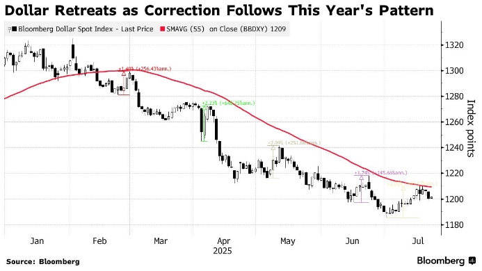 На ситуацию влияют несколько макроэкономических факторов. Трейдеры ждут «голубиного» сигнала от Федеральной резервной системы на её июльском заседании. Также они обеспокоены непредсказуемостью политики Вашингтона и независимостью центрального банка. Новые сообщения о введении пошлин и сохраняющаяся слабость экономических данных США могут ещё больше повлиять на настроения по доллару.