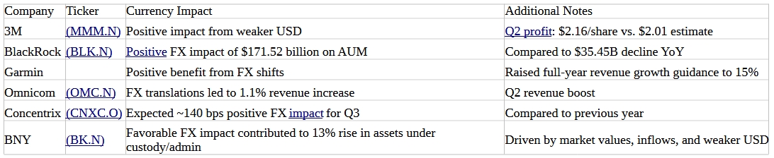 В этом отчётном периоде некоторые крупные транснациональные компании США смогли избежать негативных последствий, вызванных введением тарифов президентом Дональдом Трампом, благодаря ослаблению курса доллара.