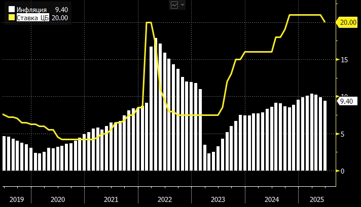 "В целом текущие вводные допускают снижение ключевой ставки сильнее, чем на 200 б.п., - указывают эксперты банка. - В прошлый раз инфляция "на цели" была при ставке в 16% годовых, а в тот период сигналы об охлаждении экономики были выражены гораздо слабее. Тем не менее ЦБ, вероятно, продолжит действовать осторожно и ограничится шагом в 200 б.п., ссылаясь на все еще высокие инфляционные ожидания и опасаясь задать рынку слишком оптимистичные ожидания (как было в 2024 году)".