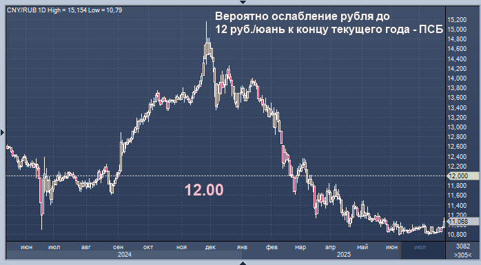 Вероятно ослабление рубля до 12 руб./юань к концу текущего года, считает управляющий по анализу банковского и финансового рынков банка ПСБ Богдан Зварич.