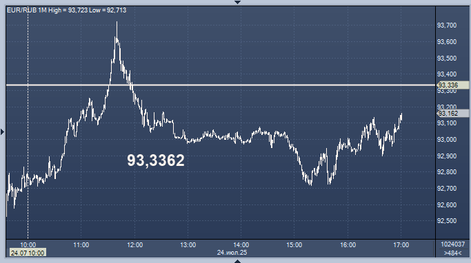 - 93,3362 рубля за 1 евро