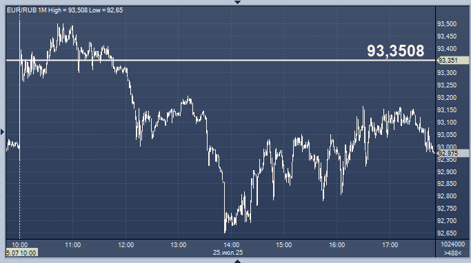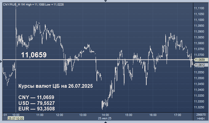 Китайский юань лишь слегка подрастает на Московской бирже днем в пятницу; рубль, умеренно снижавшийся в начале торгов, в середине дня получил локальную поддержку и смог немного скорректироваться вверх от внутридневных минимумов на фоне отсутствия сигнала относительно дальнейшего смягчения денежно-кредитной политики (ДКП) в заявлении ЦБ РФ по итогам июльского заседания. Совет директоров Банка России 25 июля принял решение снизить ключевую ставку на 200 базисных пунктов - до 18% годовых.