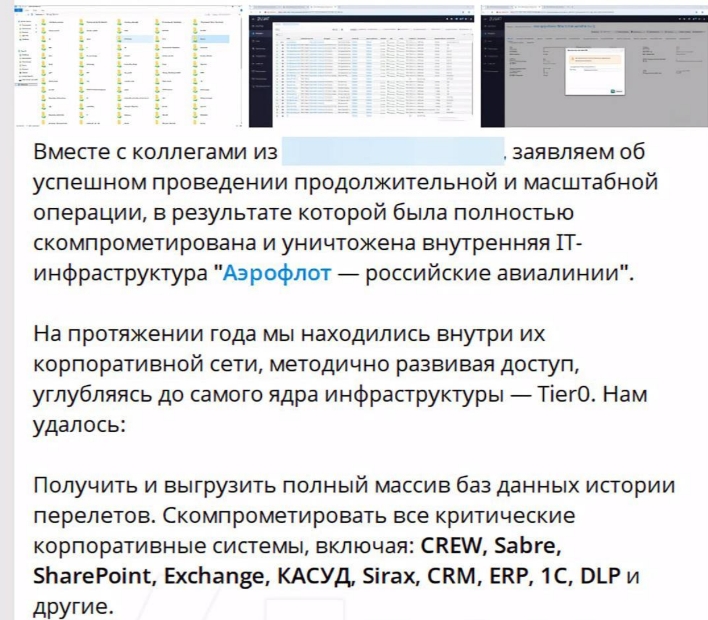Злоумышленники заявили о проникновении в системы «Аэрофлота».