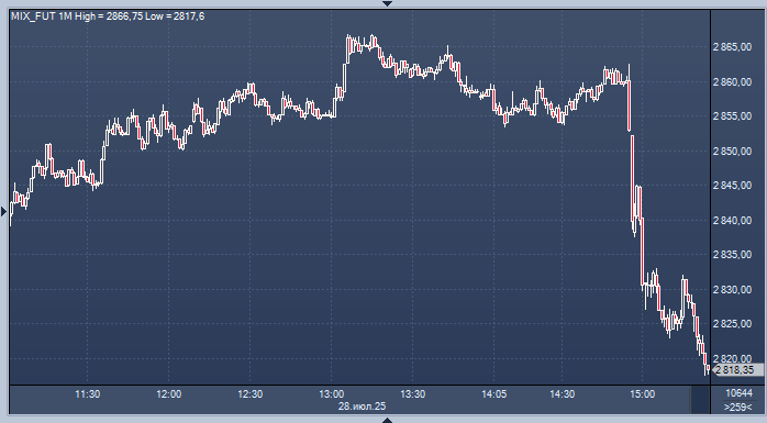 График фьючерса на индекс Мосбиржи интервалами в 1 минуту