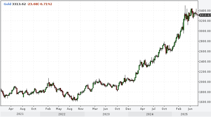 С начала 2025 года спотовые цены на золото выросли на 27%, достигнув рекордных 3500 за унцию в апреле на фоне полномасштабной торговой войны между США и Китаем.