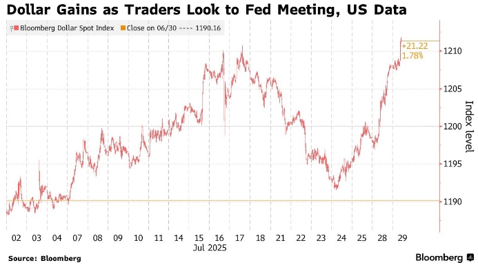 Индекс Bloomberg Dollar Spot вырос на 0,3%, достигнув самого высокого уровня с 23 июня. Это произошло из-за укрепления доллара США по отношению ко всем валютам стран «Группы десяти». В то же время европейские валюты продемонстрировали снижение, а евро продолжил падение до самого низкого уровня за более чем месяц. Это связано с опасениями относительно экономических последствий недавнего торгового соглашения между ЕС и США.