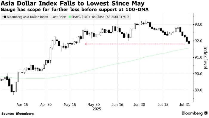 Азиатские валюты продемонстрировали падение до уровня, который наблюдался два месяца назад, на фоне укрепления позиций доллара и неопределённости в переговорах между США и некоторыми странами по вопросу тарифов.