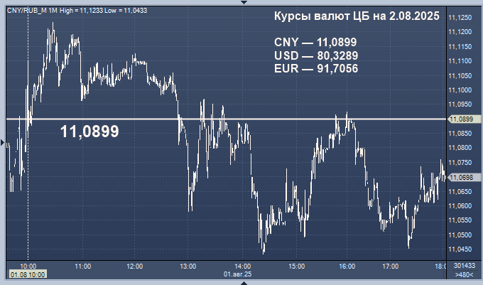 Курс доллара вышел из коридора 77,5-78,5 руб., в котором он находился в течение нескольких предыдущих недель, и пока стабилизировался вблизи отметки 80 руб. Биржевой курс юаня с начала лета в основном формировался ниже отметки 11 руб., но преодолел этот уровень в последние дни июля и в пятницу находился вблизи 11,1 руб.", - отмечает старший аналитик УК "Первая" Наталья Ващелюк.