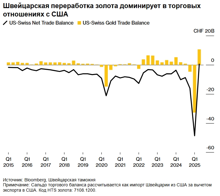Ранее в этом году Швейцарский национальный банк уже поднимал этот вопрос в своей статье, утверждая, что чрезмерный экспорт золота в США не следует включать в анализ торговых отношений между двумя экономиками.