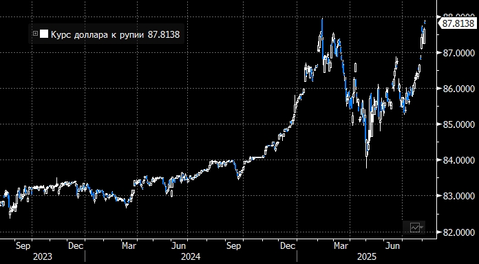 «Сегодняшняя сессия уже обещала быть сложной (для рупии), а последняя угроза Трампа ввести пошлины только усилила давление», — цитирует Reuters старшего трейдера одного частного банка. «Я ожидаю, что Резервный банк Индии вмешается — они не захотят допустить бесконтрольного падения курса рупии, особенно на фоне риторики США».